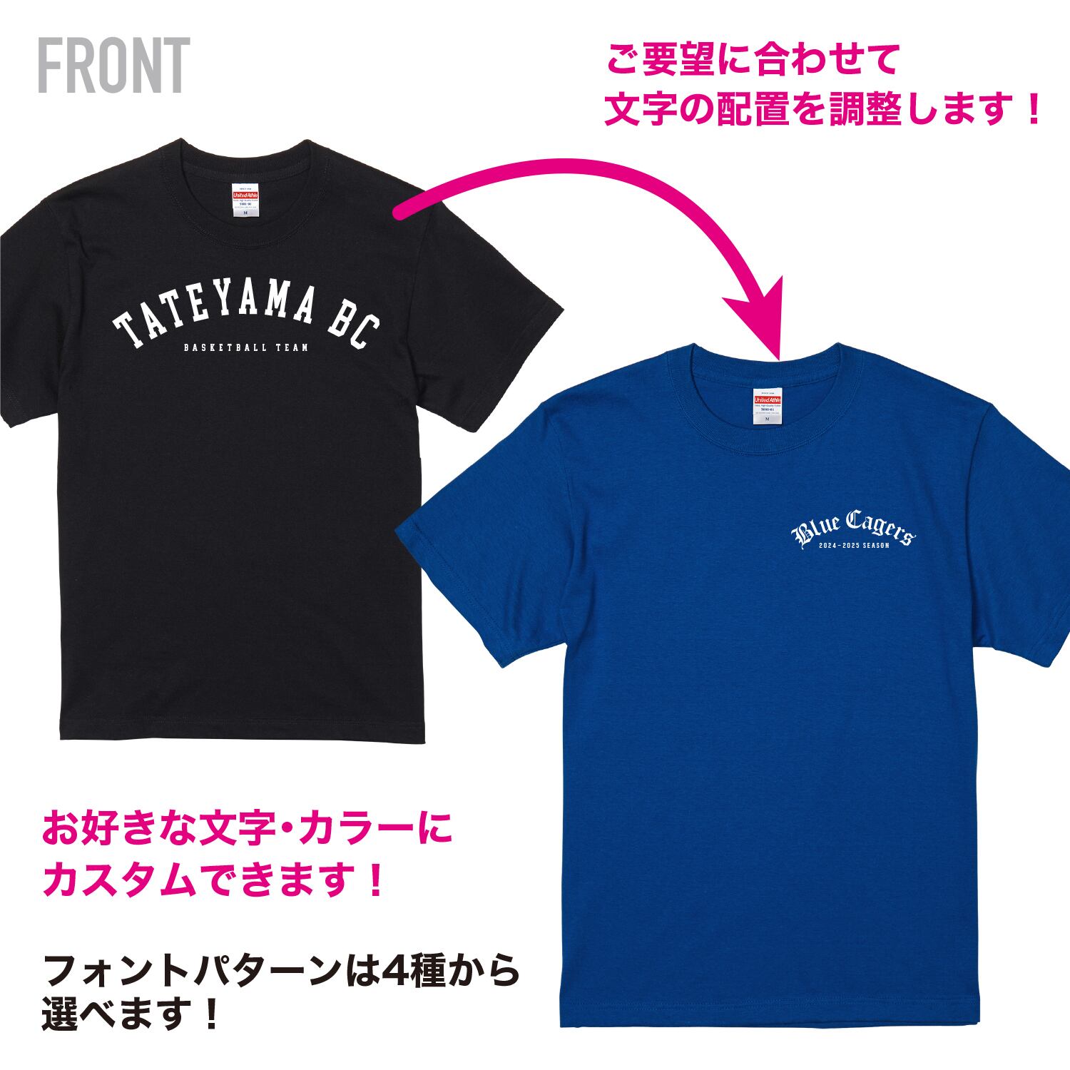 スポーツチームやグループでおそろいTシャツとしてオリジナルのデザインを施すのに最適です。