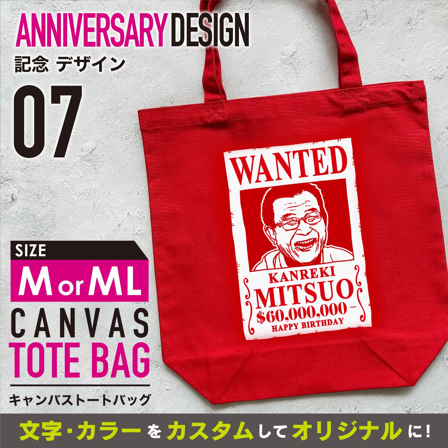 記念07 WANTED|還暦祝い|誕生日|周年祝い|記念|トートバッグ|オリジナル|プリント|名入れ|チーム|部活|サッカー|野球|バスケ|メンズ|レディース|記念|誕生日|お祝い|プレゼント|父の日|母の日|敬老の日|Tシャツ