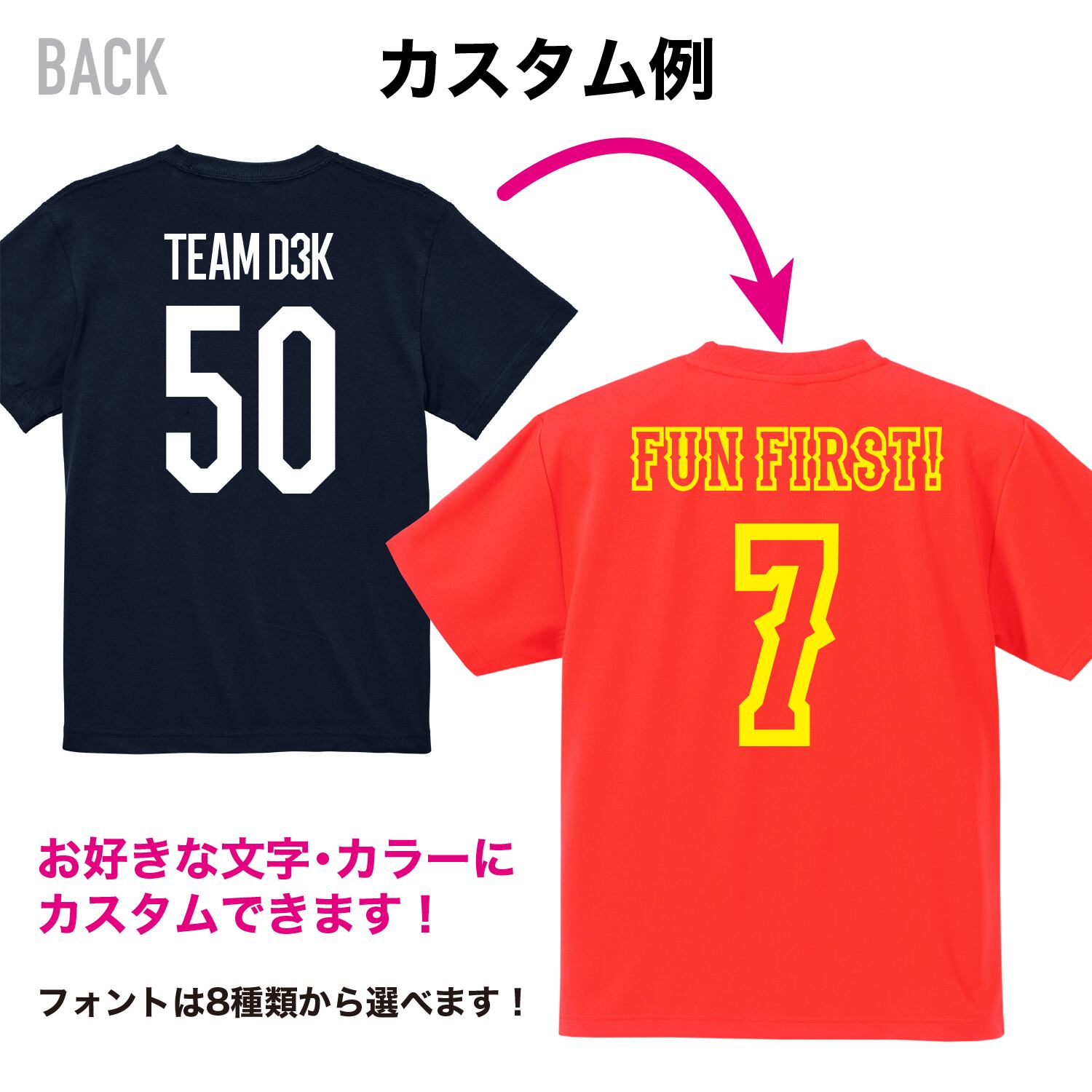 スポーツチームやグループでおそろいTシャツとしてオリジナルのデザインを施すのに最適です。