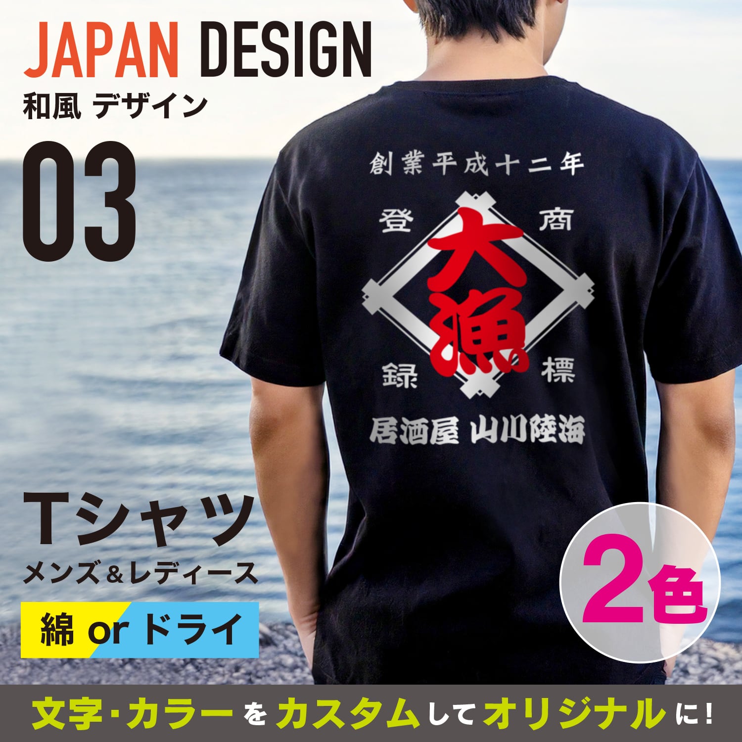 和風03【2色】 |昭和商店|レトロ|Tシャツ|オリジナル|プリント|名入れ|チーム|和風|店|ショップ|居酒屋|仕事着|ユニフォーム|メンズ|レディース|記念|誕生日|お祝い|プレゼント|父の日|母の日|敬老の日|